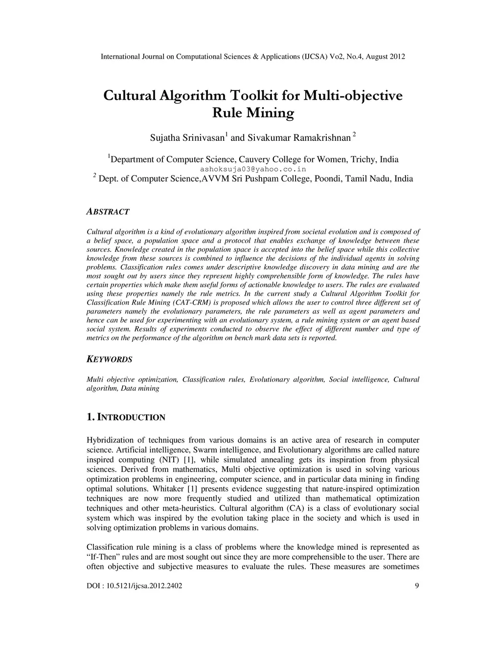 Cultural Algorithm Toolkit for Multi-objective Rule Mining