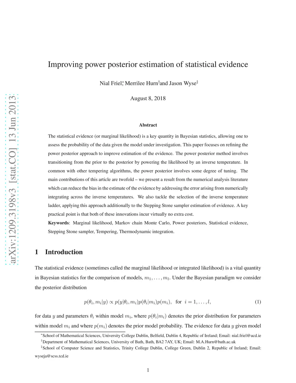 Improving power posterior estimation of statistical evidence