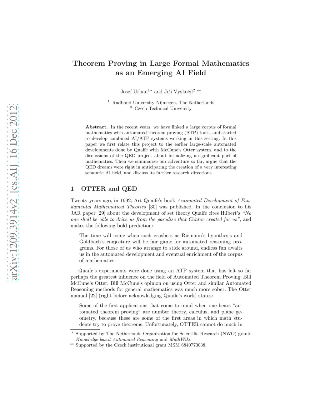 Theorem Proving in Large Formal Mathematics as an Emerging AI Field