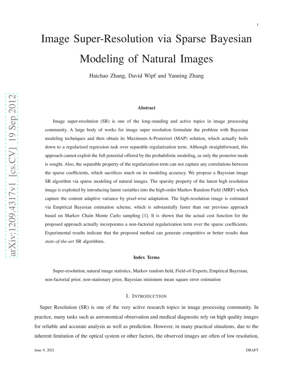 Image Super-Resolution via Sparse Bayesian Modeling of Natural Images