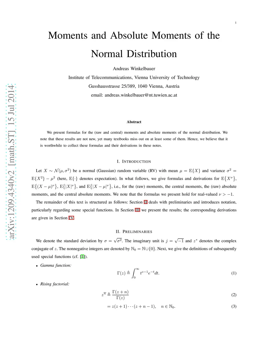 We present formulas for the (raw and central) moments and absolute moments of the normal distribution. We note that these results are not new, yet many textbooks miss out on at least some of them. Hence, we believe that it is worthwhile to collect these formulas and their derivations in these notes.