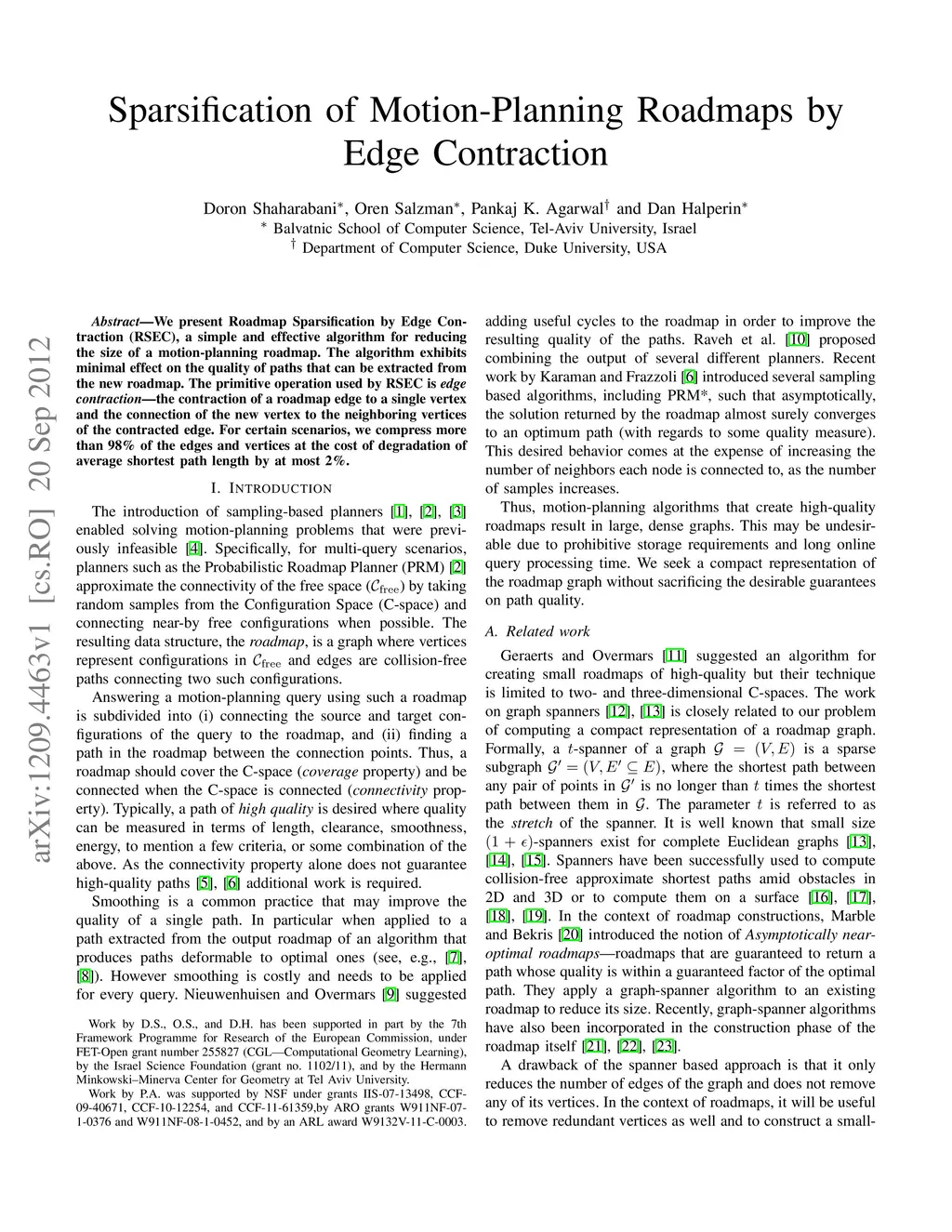 Sparsification of Motion-Planning Roadmaps by Edge Contraction