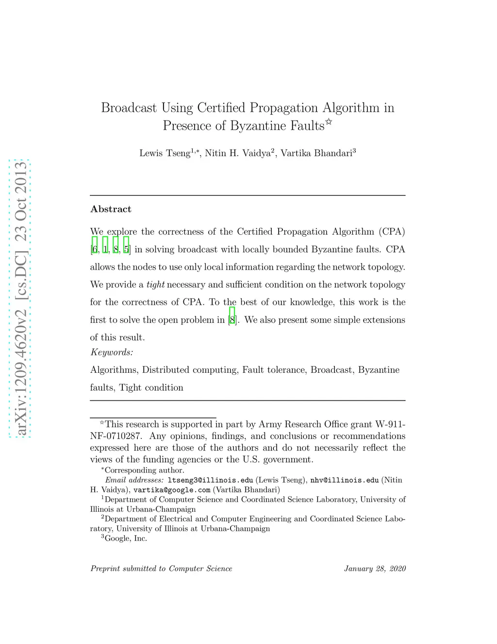 Broadcast Using Certified Propagation Algorithm in Presence of Byzantine