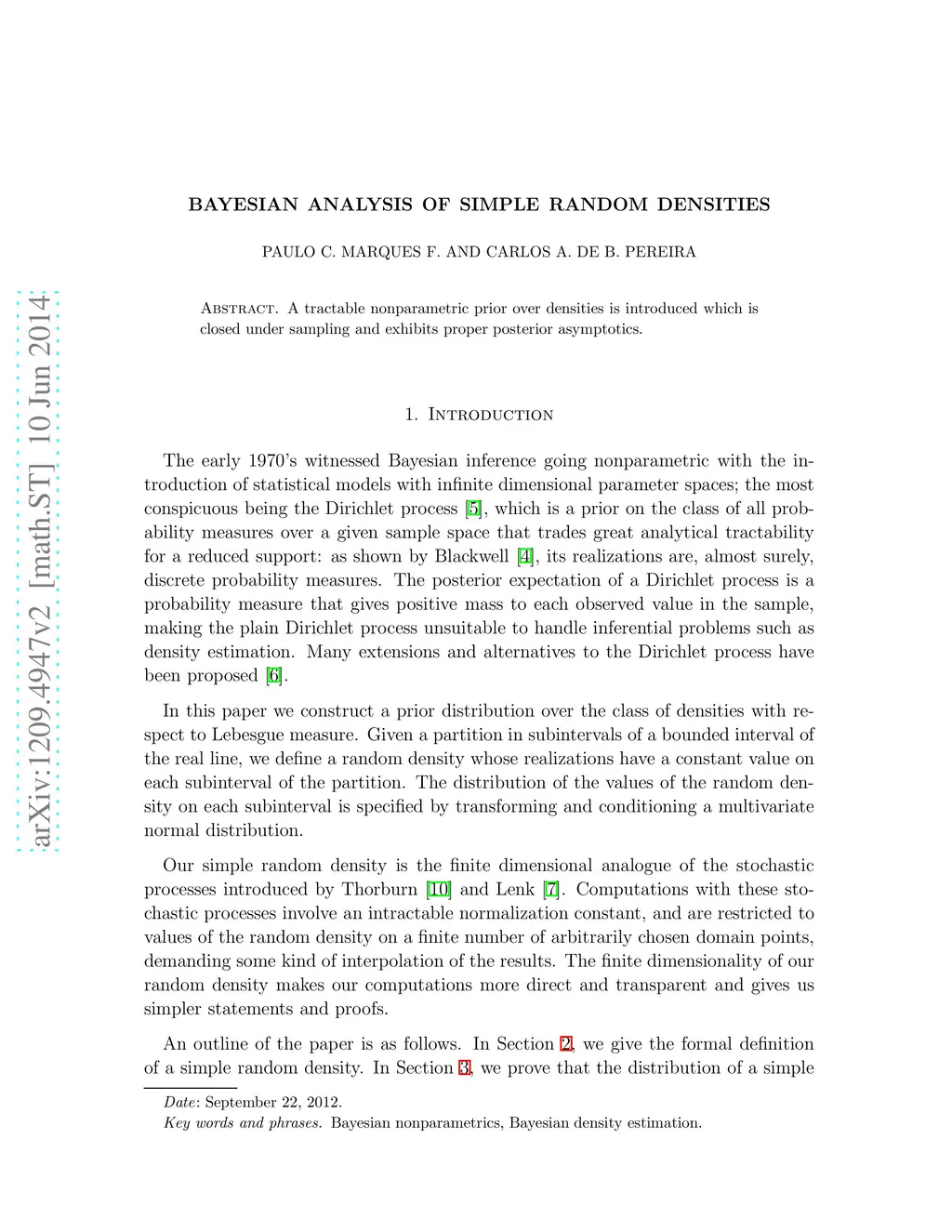 A tractable nonparametric prior over densities is introduced which is closed under sampling and exhibits proper posterior asymptotics.