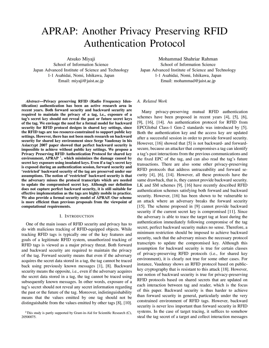 APRAP: Another Privacy Preserving RFID Authentication Protocol