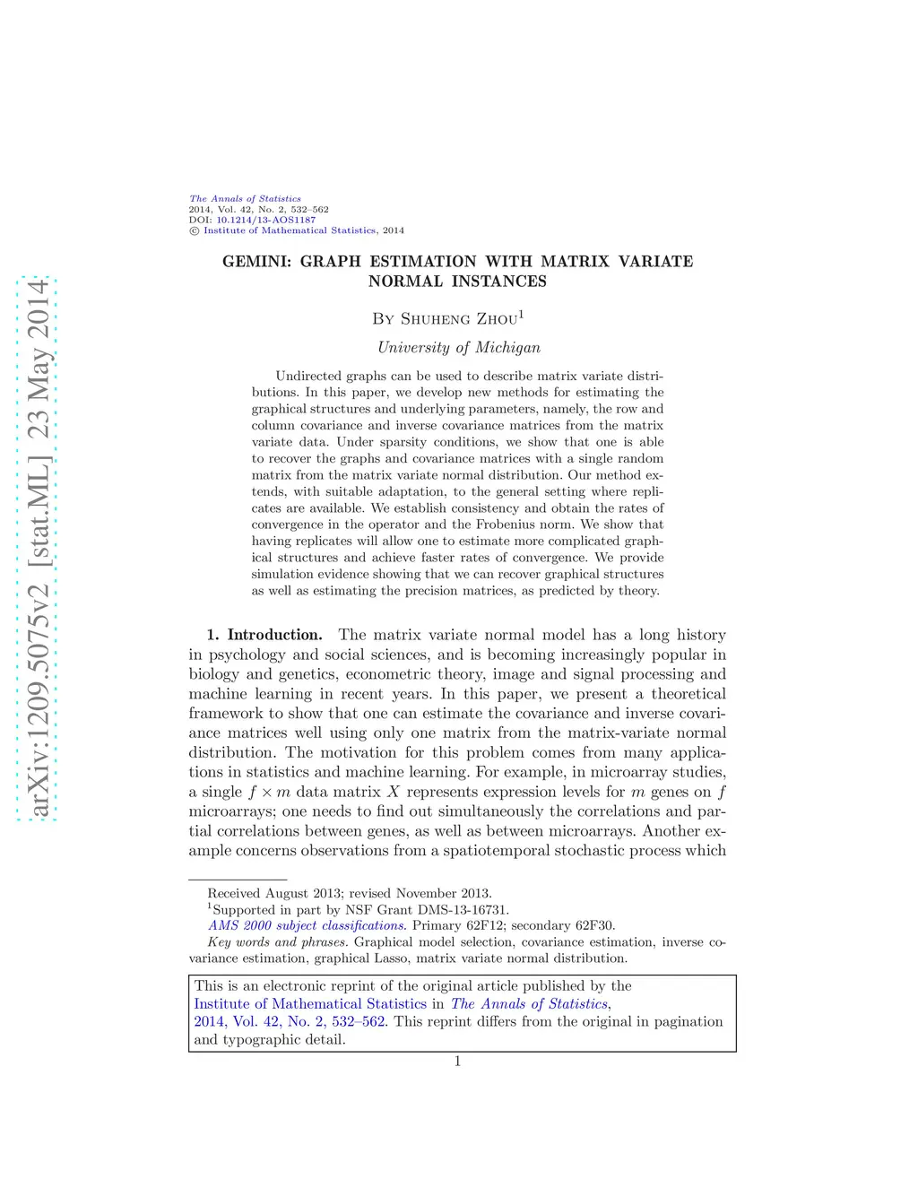 Gemini: Graph estimation with matrix variate normal instances