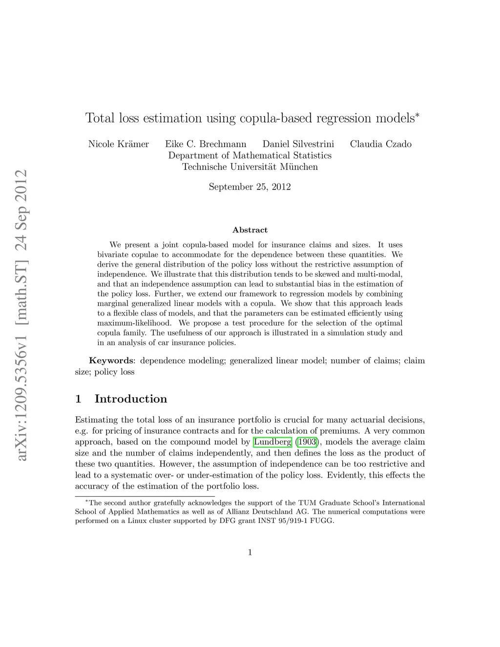 Total loss estimation using copula-based regression models