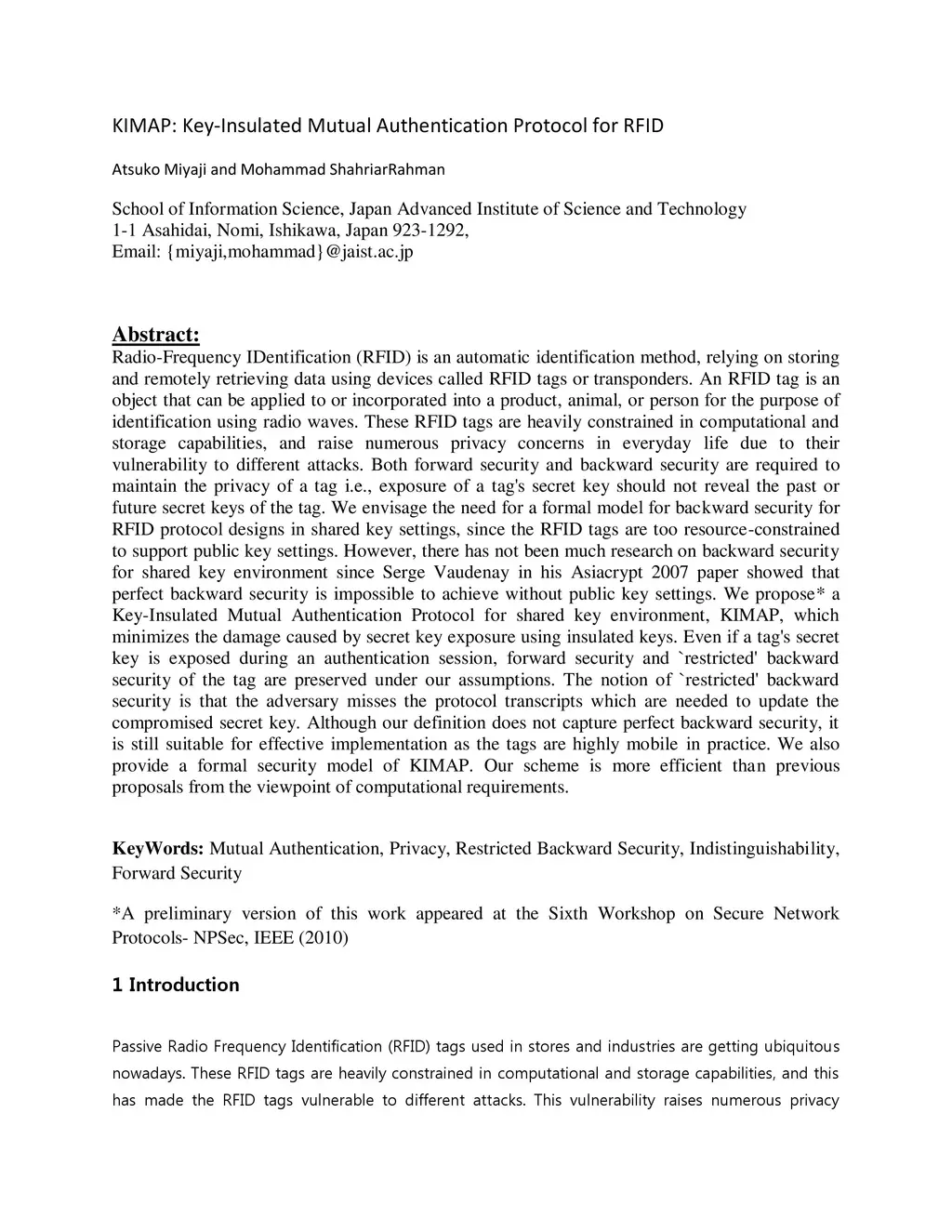 KIMAP: Key-Insulated Mutual Authentication Protocol for RFID