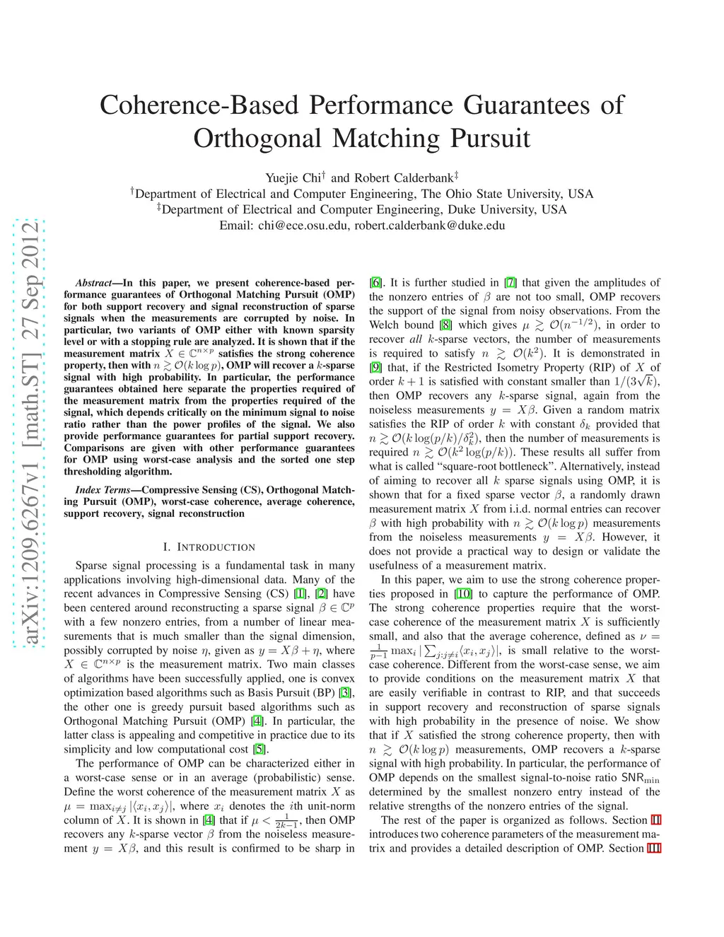Coherence-Based Performance Guarantees of Orthogonal Matching Pursuit