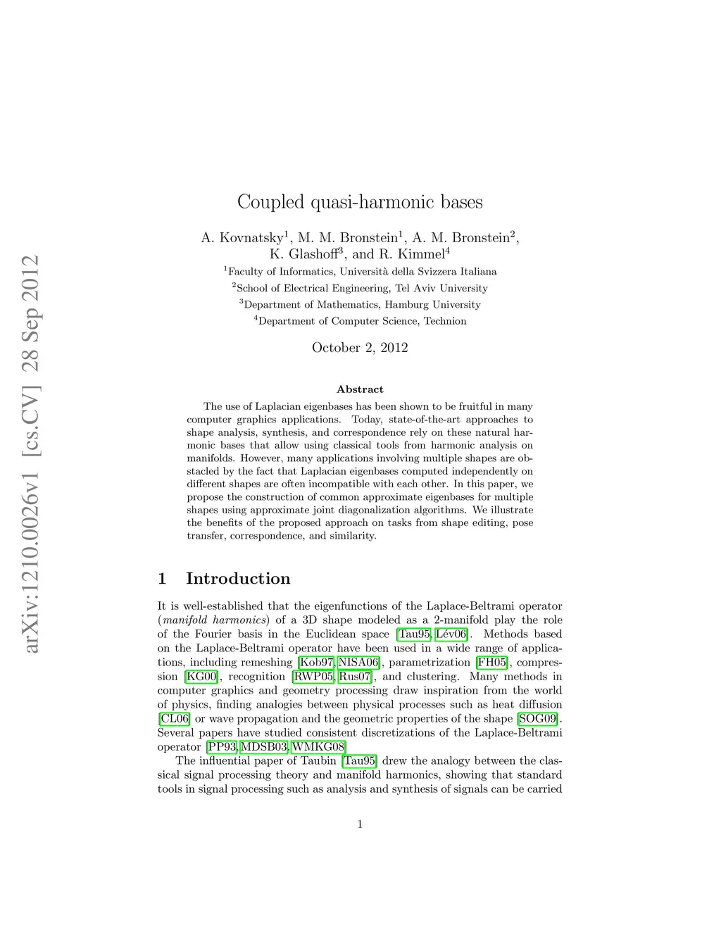 The use of Laplacian eigenbases has been shown to be fruitful in many computer graphics applications. Today, state-of-the-art approaches to shape analysis, synthesis, and correspondence rely on these natural harmonic bases that allow using classical tools from harmonic analysis on manifolds. However, many applications involving multiple shapes are obstacled by the fact that Laplacian eigenbases computed independently on different shapes are often incompatible with each other. In this paper, we propose the construction of common approximate eigenbases for multiple shapes using approximate joint diagonalization algorithms. We illustrate the benefits of the proposed approach on tasks from shape editing, pose transfer, correspondence, and similarity.