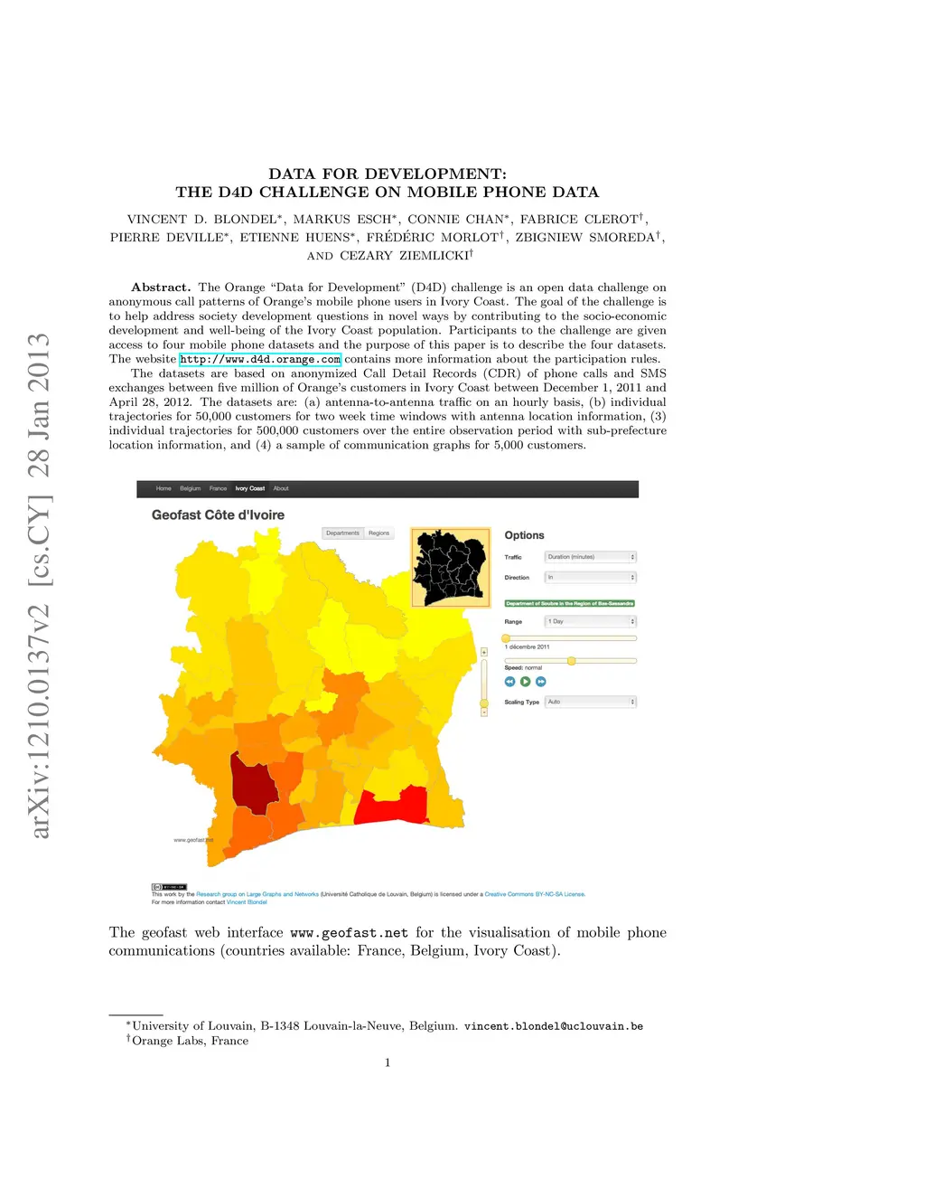 Data for Development: the D4D Challenge on Mobile Phone Data