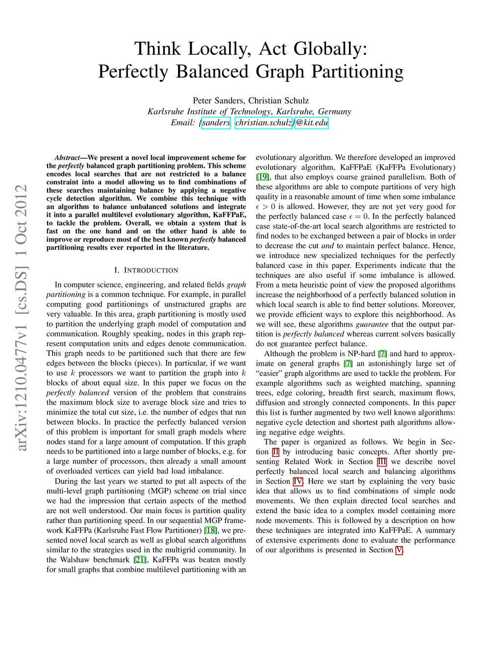 Think Locally, Act Globally: Perfectly Balanced Graph Partitioning
