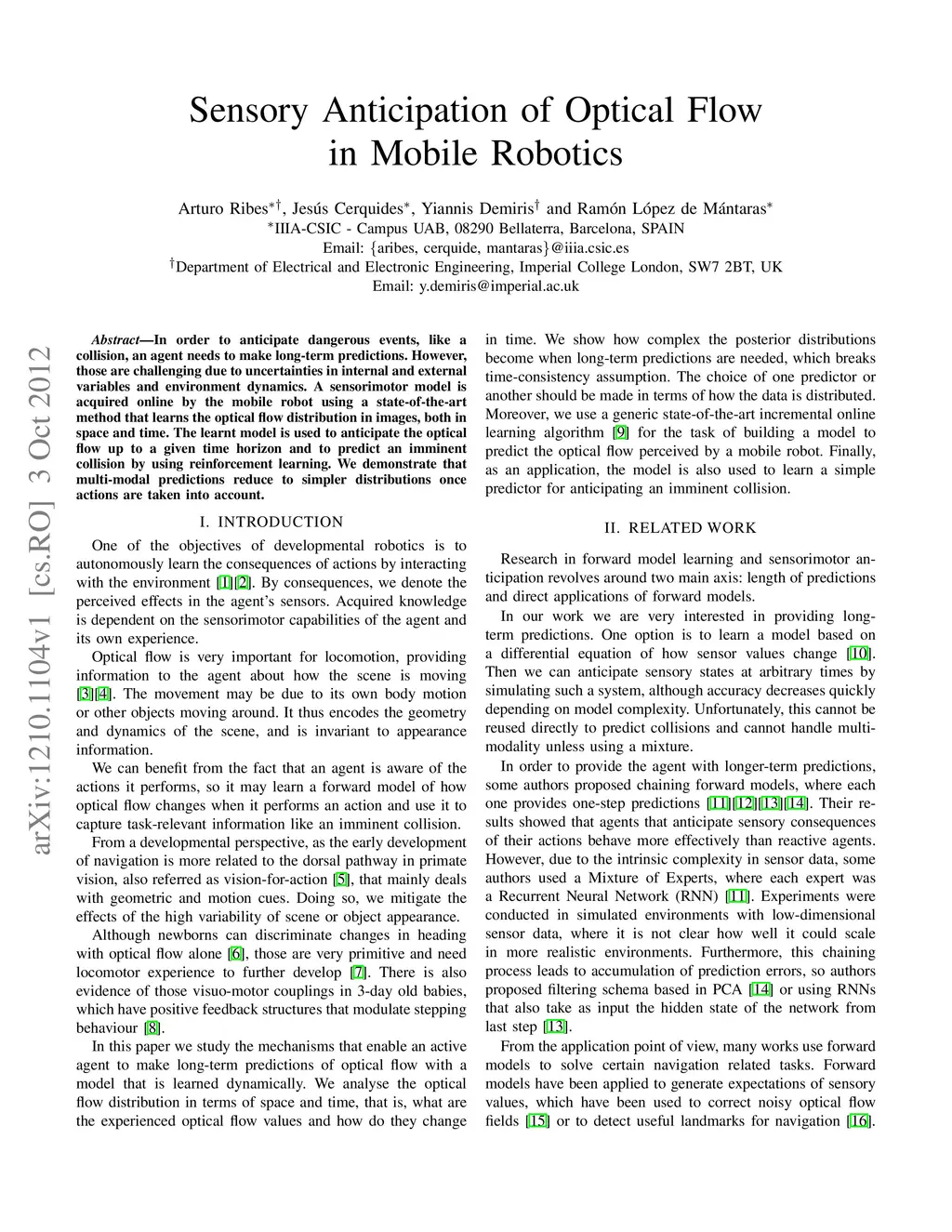 Sensory Anticipation of Optical Flow in Mobile Robotics