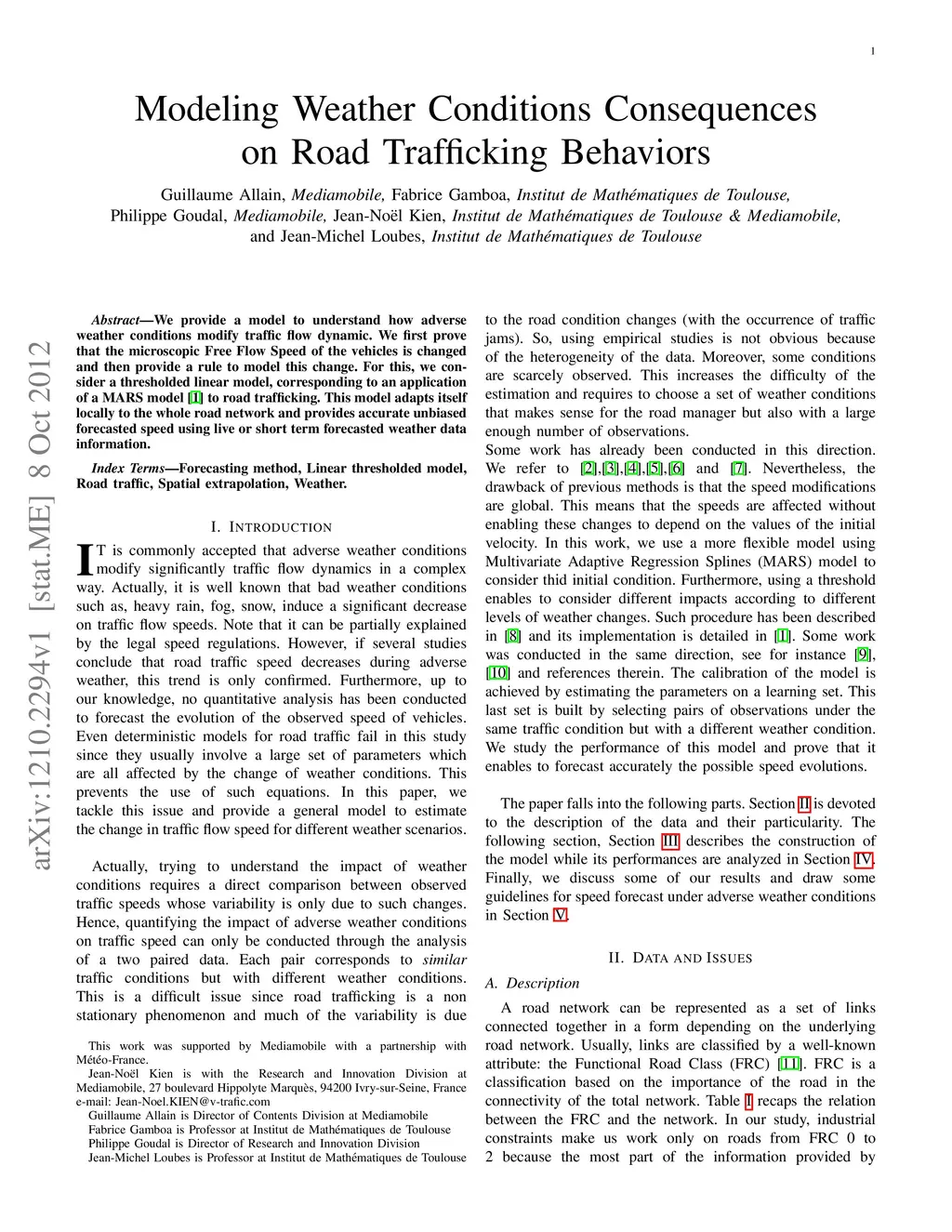 Modeling Weather Conditions Consequences on Road Trafficking Behaviors