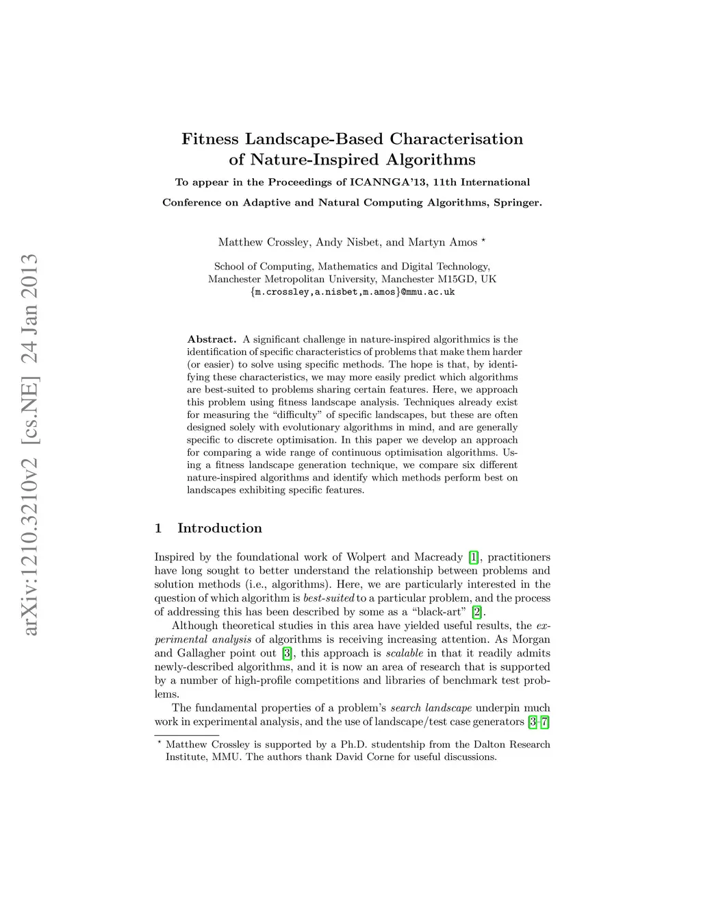 Fitness Landscape-Based Characterisation of Nature-Inspired Algorithms