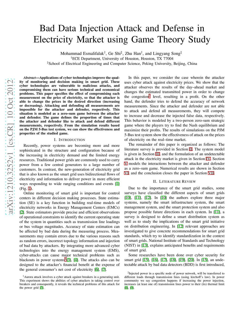 Bad Data Injection Attack and Defense in Electricity Market using Game