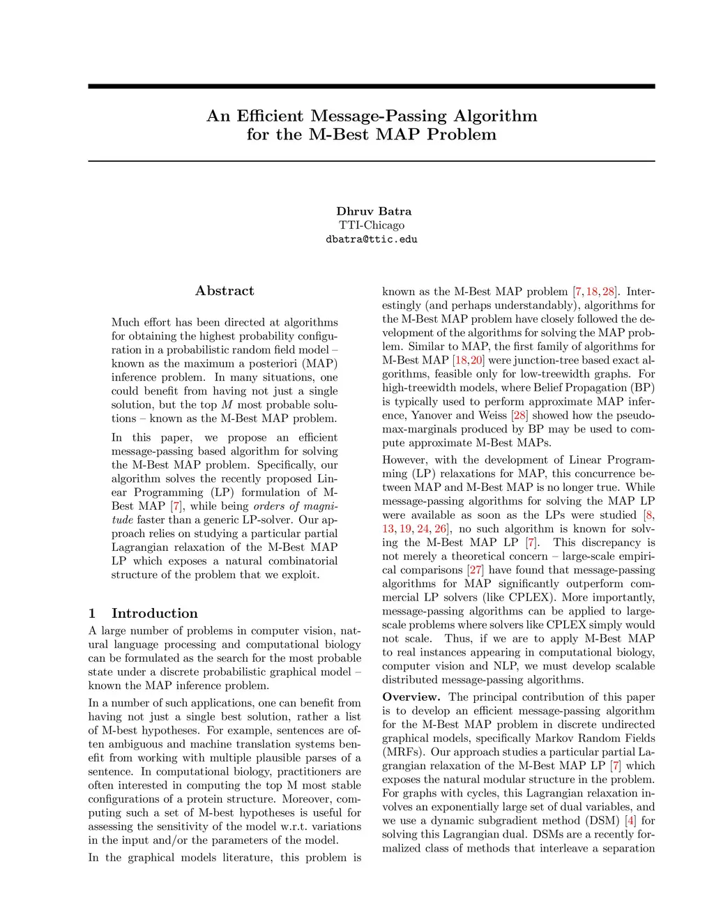 An Efficient Message-Passing Algorithm for the M-Best MAP Problem