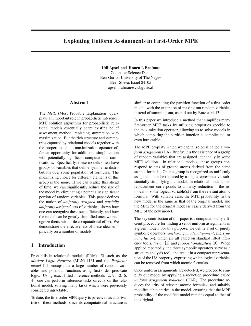 The MPE (Most Probable Explanation) query plays an important role in probabilistic inference. MPE solution algorithms for probabilistic relational models essentially adapt existing belief assessment method, replacing summation with maximization. But the rich structure and symmetries captured by relational models together with the properties of the maximization operator offer an opportunity for additional simplification with potentially significant computational ramifications. Specifically, these models often have groups of variables that define symmetric distributions over some population of formulas. The maximizing choice for different elements of this group is the same. If we can realize this ahead of time, we can significantly reduce the size of the model by eliminating a potentially significant portion of random variables. This paper defines the notion of uniformly assigned and partially uniformly assigned sets of variables, shows how one can recognize these sets efficiently, and how the model can be greatly simplified once we recognize them, with little computational effort. We demonstrate the effectiveness of these ideas empirically on a number of models.
