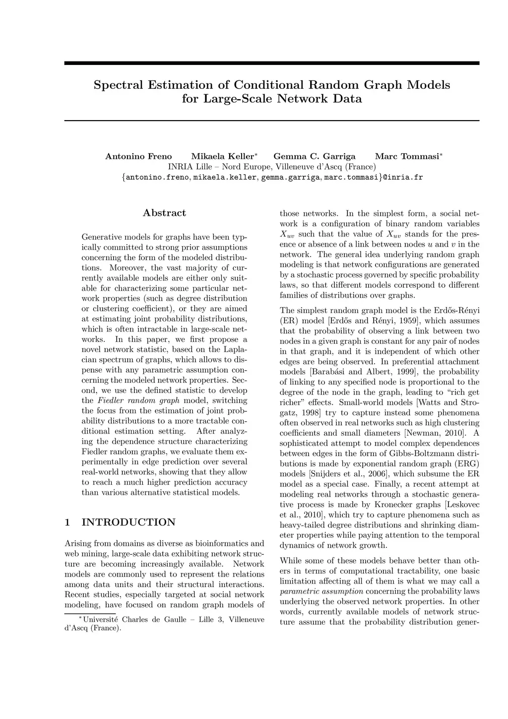 Spectral Estimation of Conditional Random Graph Models for Large-Scale