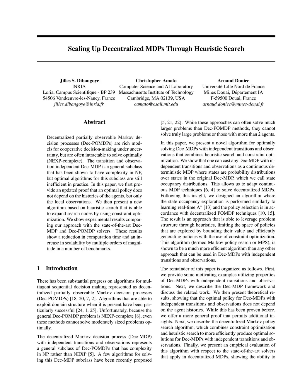 Scaling Up Decentralized MDPs Through Heuristic Search