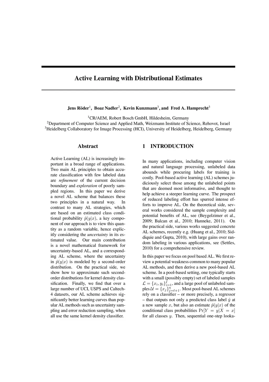 Active Learning with Distributional Estimates