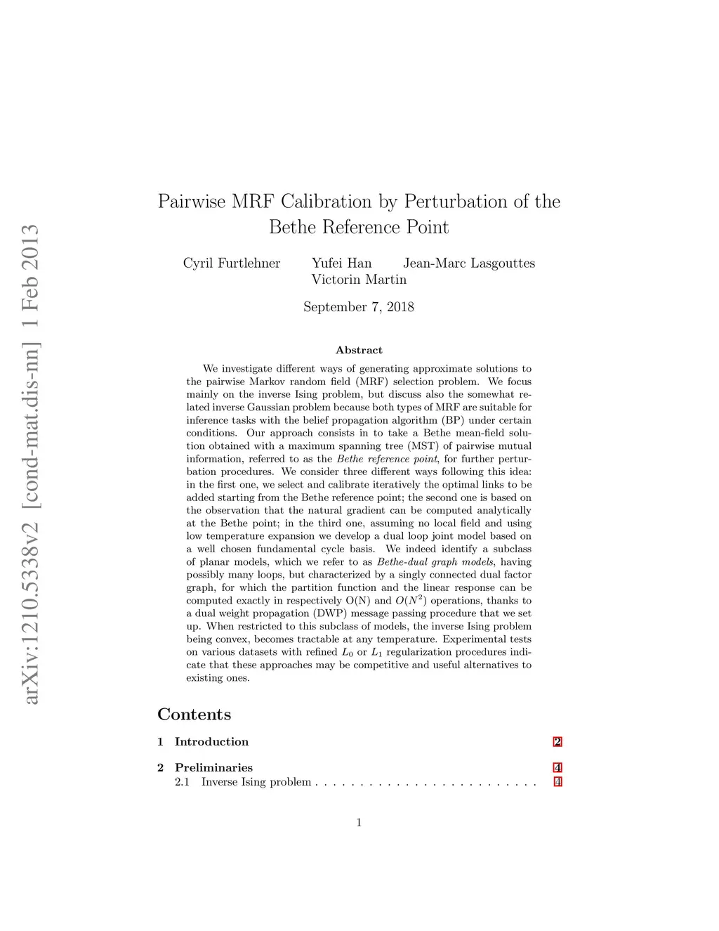Pairwise MRF Calibration by Perturbation of the Bethe Reference Point