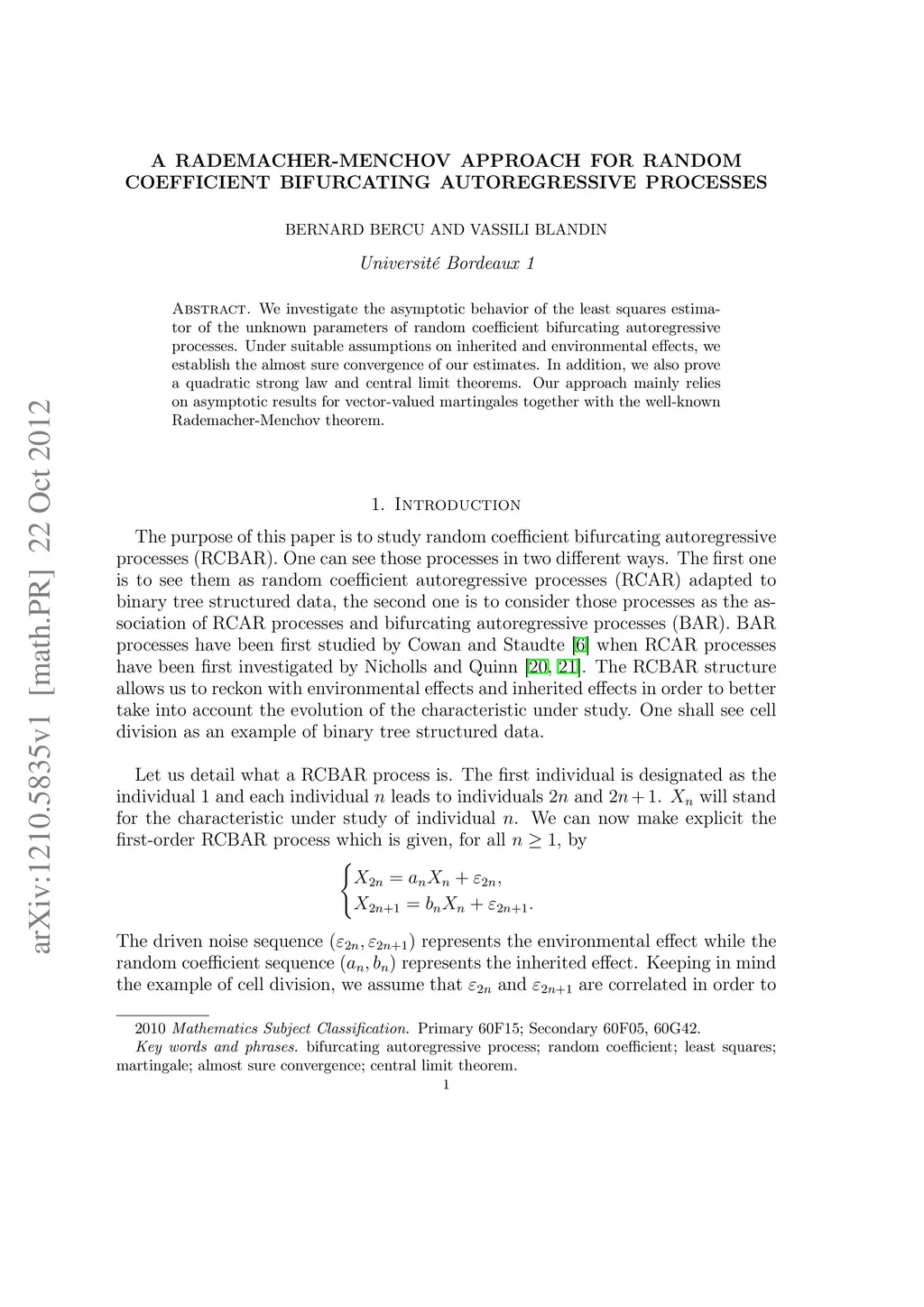 A Rademacher-Menchov approach for random coefficient bifurcating