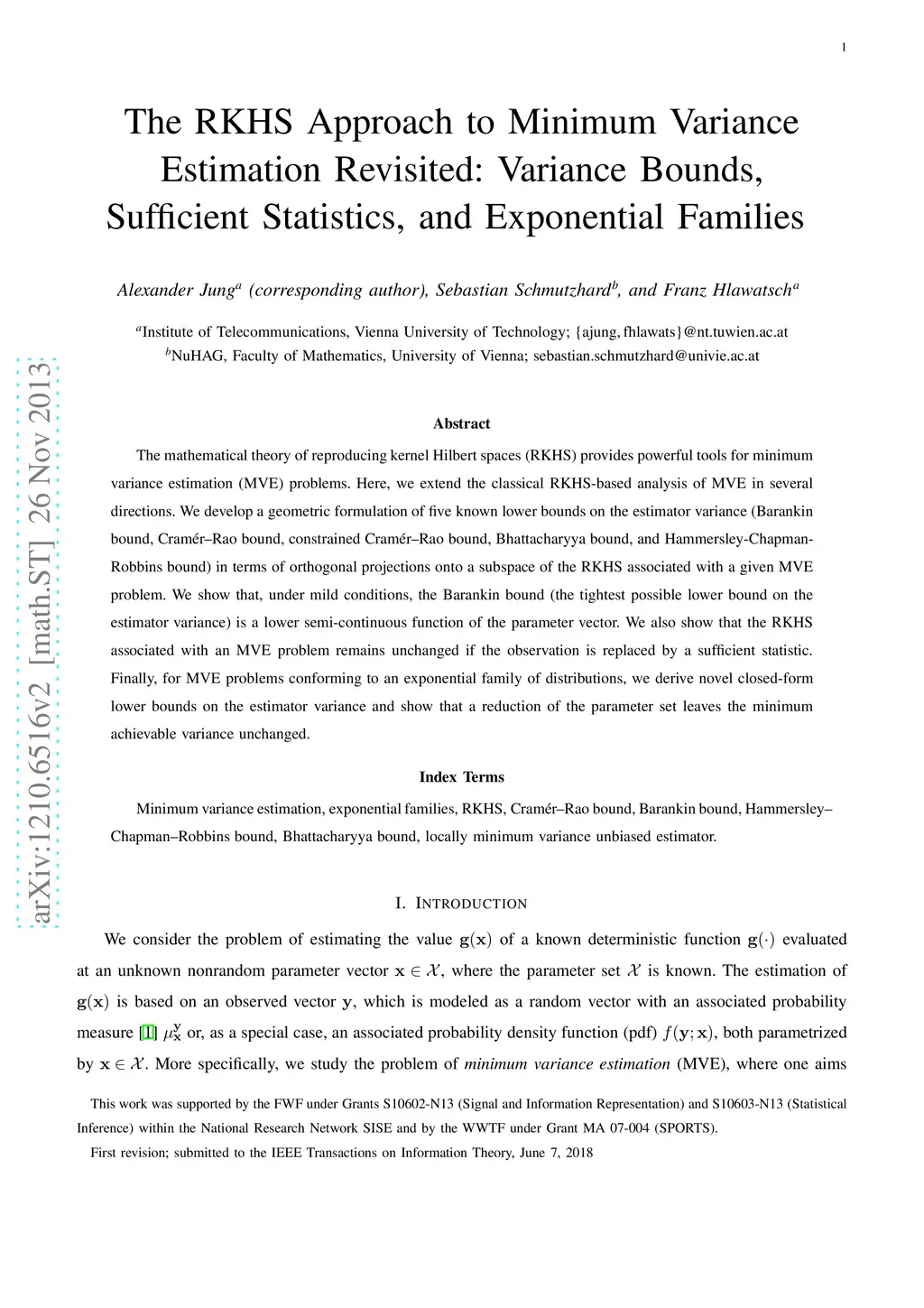 The RKHS Approach to Minimum Variance Estimation Revisited: Variance
