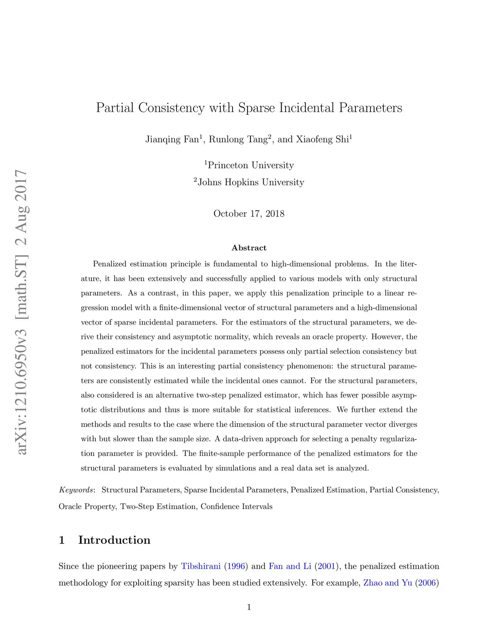Partial Consistency with Sparse Incidental Parameters