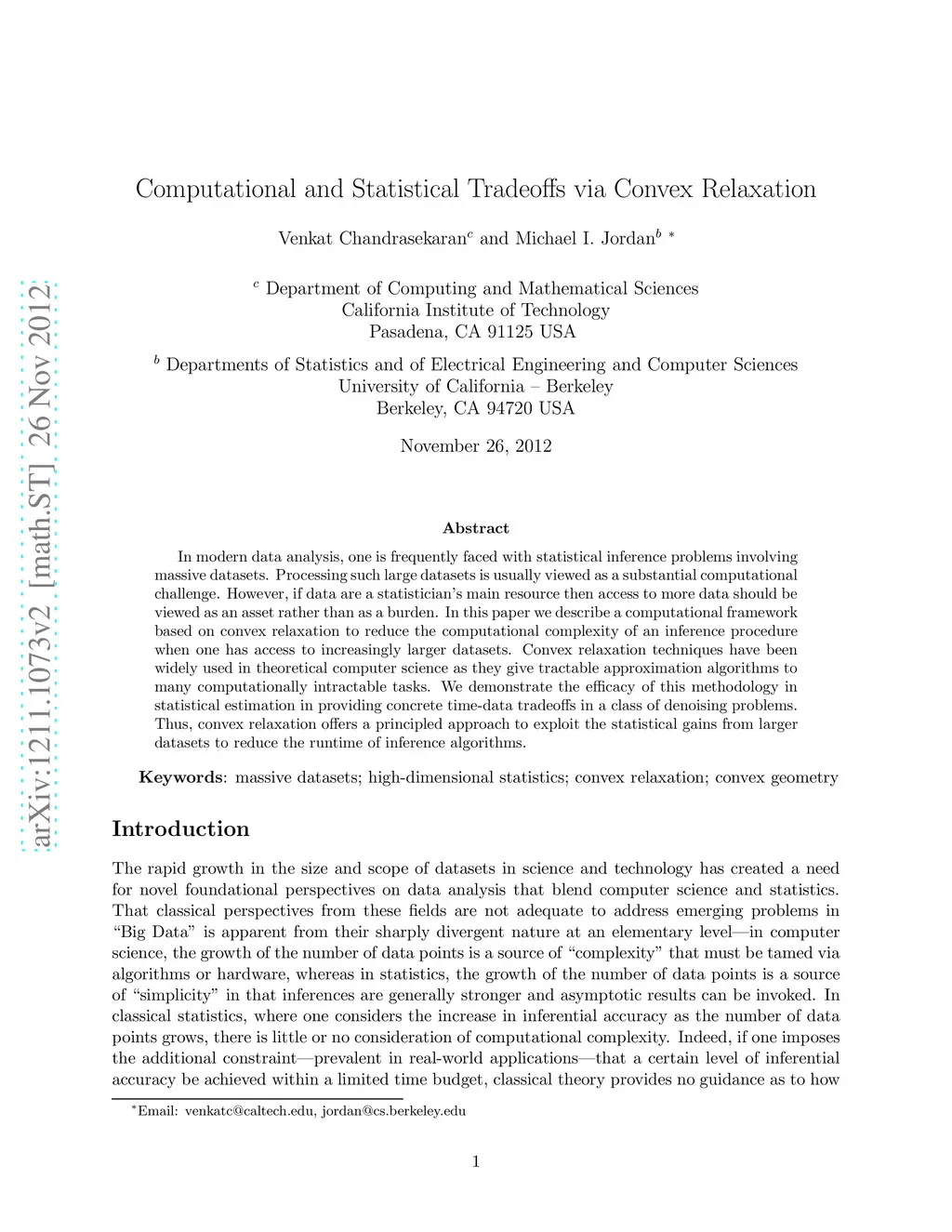 Computational and Statistical Tradeoffs via Convex Relaxation