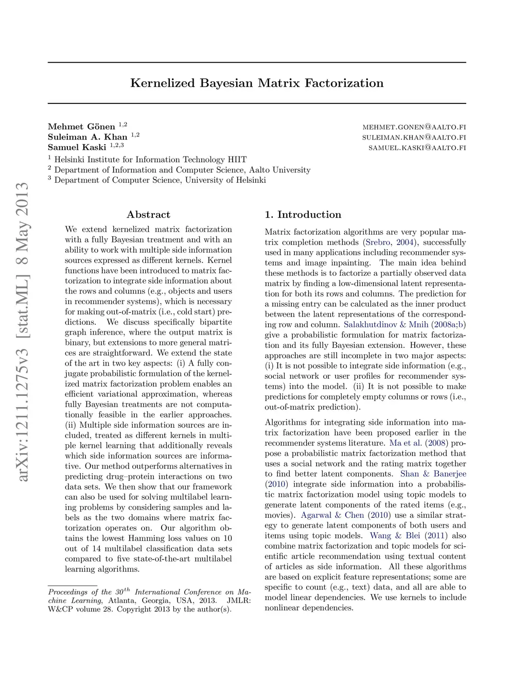 Kernelized Bayesian Matrix Factorization
