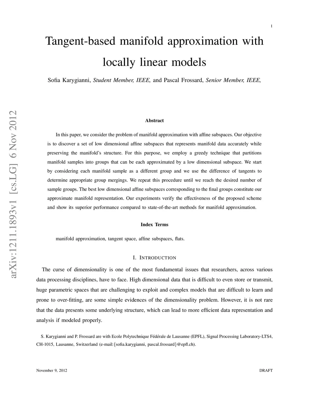 Tangent-based manifold approximation with locally linear models