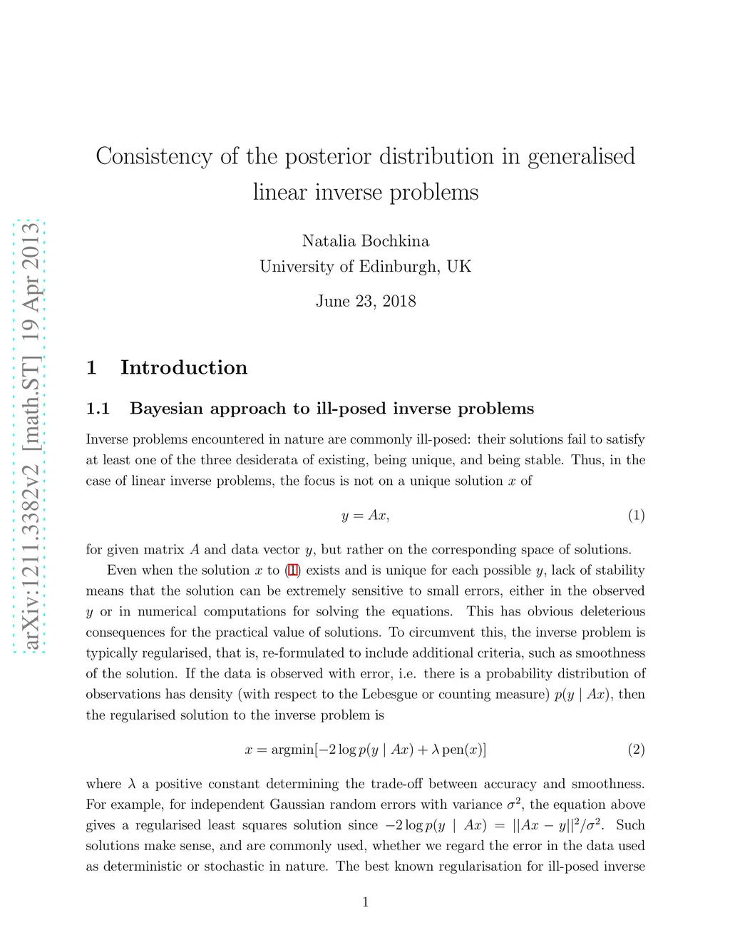 Consistency of the posterior distribution in generalised linear inverse