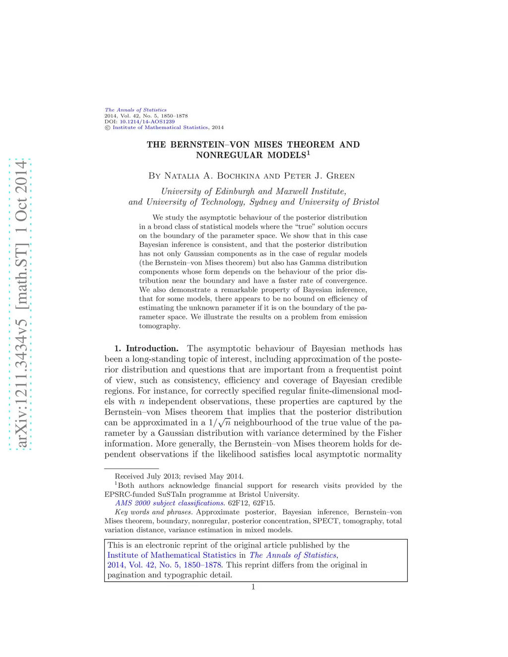 We study the asymptotic behaviour of the posterior distribution in a broad class of statistical models where the "true" solution occurs on the boundary of the parameter space. We show that in this case Bayesian inference is consistent, and that the posterior distribution has not only Gaussian components as in the case of regular models (the Bernstein-von Mises theorem) but also has Gamma distribution components whose form depends on the behaviour of the prior distribution near the boundary and have a faster rate of convergence. We also demonstrate a remarkable property of Bayesian inference, that for some models, there appears to be no bound on efficiency of estimating the unknown parameter if it is on the boundary of the parameter space. We illustrate the results on a problem from emission tomography.