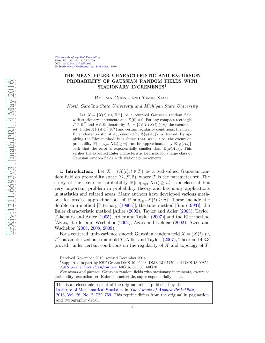 The mean Euler characteristic and excursion probability of Gaussian