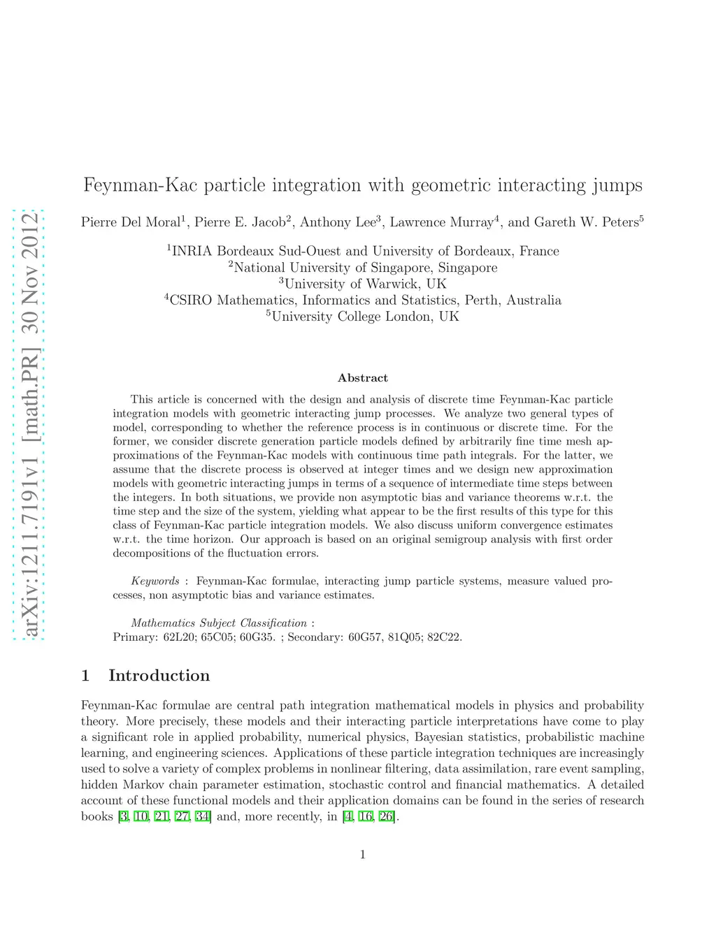 This article is concerned with the design and analysis of discrete time Feynman-Kac particle integration models with geometric interacting jump processes. We analyze two general types of model, corresponding to whether the reference process is in continuous or discrete time. For the former, we consider discrete generation particle models defined by arbitrarily fine time mesh approximations of the Feynman-Kac models with continuous time path integrals. For the latter, we assume that the discrete process is observed at integer times and we design new approximation models with geometric interacting jumps in terms of a sequence of intermediate time steps between the integers. In both situations, we provide non asymptotic bias and variance theorems w.r.t. the time step and the size of the system, yielding what appear to be the first results of this type for this class of Feynman-Kac particle integration models. We also discuss uniform convergence estimates w.r.t. the time horizon. Our approach is based on an original semigroup analysis with first order decompositions of the fluctuation errors.