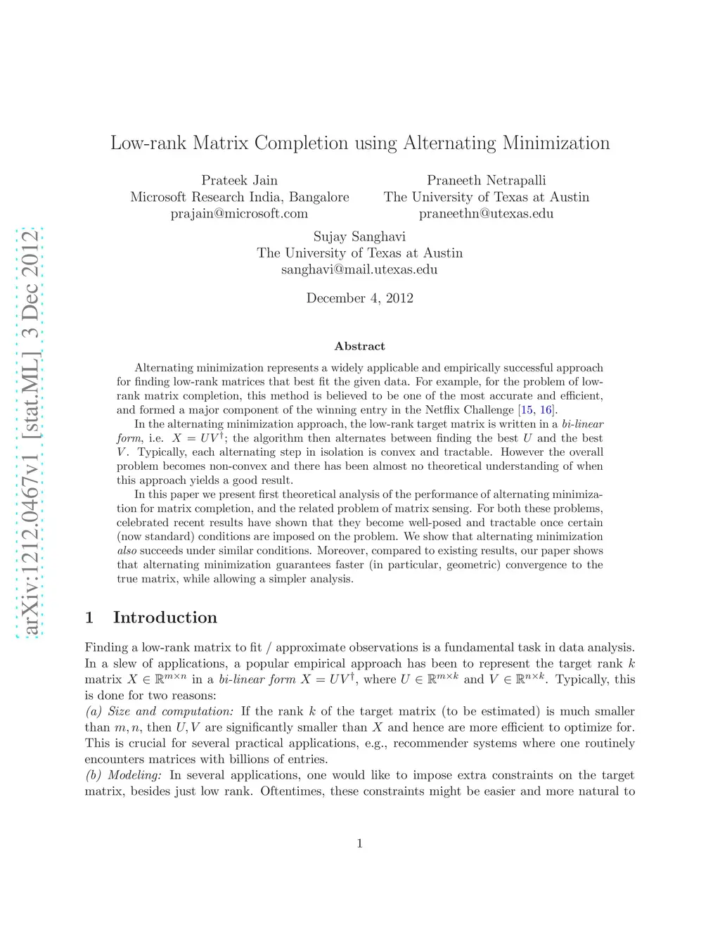 Low-rank Matrix Completion using Alternating Minimization