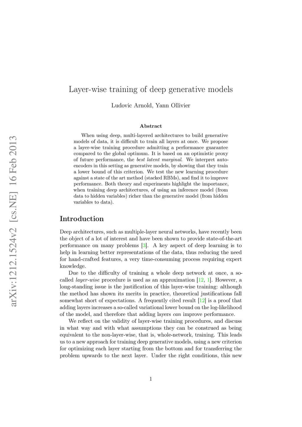 Layer-wise learning of deep generative models