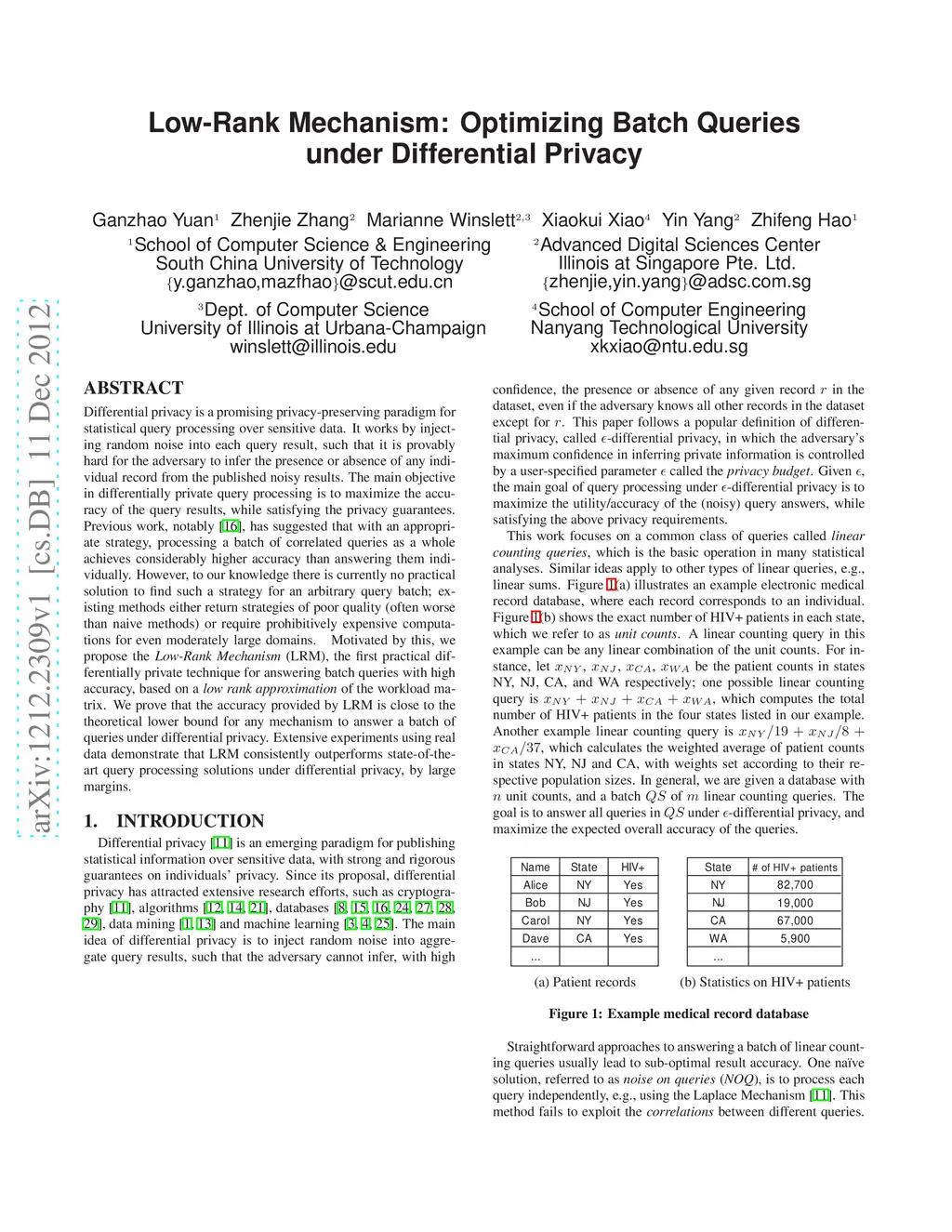 Low Rank Mechanism for Optimizing Batch Queries under Differential