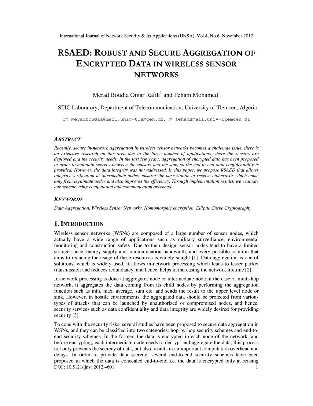 RSAED: Robust and Secure Aggregation of Encrypted Data in Wireless