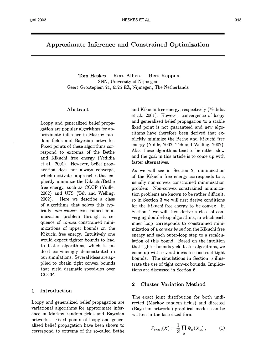 Loopy and generalized belief propagation are popular algorithms for approximate inference in Markov random fields and Bayesian networks. Fixed points of these algorithms correspond to extrema of the Bethe and Kikuchi free energy. However, belief propagation does not always converge, which explains the need for approaches that explicitly minimize the Kikuchi/Bethe free energy, such as CCCP and UPS. Here we describe a class of algorithms that solves this typically nonconvex constrained minimization of the Kikuchi free energy through a sequence of convex constrained minimizations of upper bounds on the Kikuchi free energy. Intuitively one would expect tighter bounds to lead to faster algorithms, which is indeed convincingly demonstrated in our simulations. Several ideas are applied to obtain tight convex bounds that yield dramatic speed-ups over CCCP.