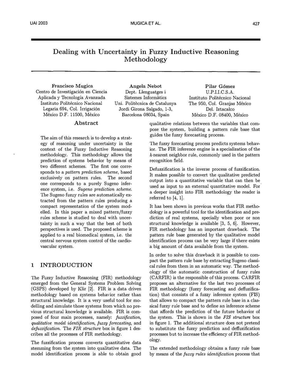 The aim of this research is to develop a reasoning under uncertainty strategy in the context of the Fuzzy Inductive Reasoning (FIR) methodology. FIR emerged from the General Systems Problem Solving developed by G. Klir. It is a data driven methodology based on systems behavior rather than on structural knowledge. It is a very useful tool for both the modeling and the prediction of those systems for which no previous structural knowledge is available. FIR reasoning is based on pattern rules synthesized from the available data. The size of the pattern rule base can be very large making the prediction process quite difficult. In order to reduce the size of the pattern rule base, it is possible to automatically extract classical Sugeno fuzzy rules starting from the set of pattern rules. The Sugeno rule base preserves pattern rules knowledge as much as possible. In this process some information is lost but robustness is considerably increased. In the forecasting process either the pattern rule base or the Sugeno fuzzy rule base can be used. The first option is desirable when the computational resources make it possible to deal with the overall pattern rule base or when the extracted fuzzy rules are not accurate enough due to uncertainty associated to the original data. In the second option, the prediction process is done by means of the classical Sugeno inference system. If the amount of uncertainty associated to the data is small, the predictions obtained using the Sugeno fuzzy rule base will be very accurate. In this paper a mixed pattern/fuzzy rules strategy is proposed to deal with uncertainty in such a way that the best of both perspectives is used. Areas in the data space with a higher level of uncertainty are identified by means of the so-called error models. The prediction process in these areas makes use of a mixed pattern/fuzzy rules scheme, whereas areas identified with a lower level of uncertainty only use the Sugeno fuzzy rule base. The proposed strategy is applied to a real biomedical system, i.e., the central nervous system control of the cardiovascular system.