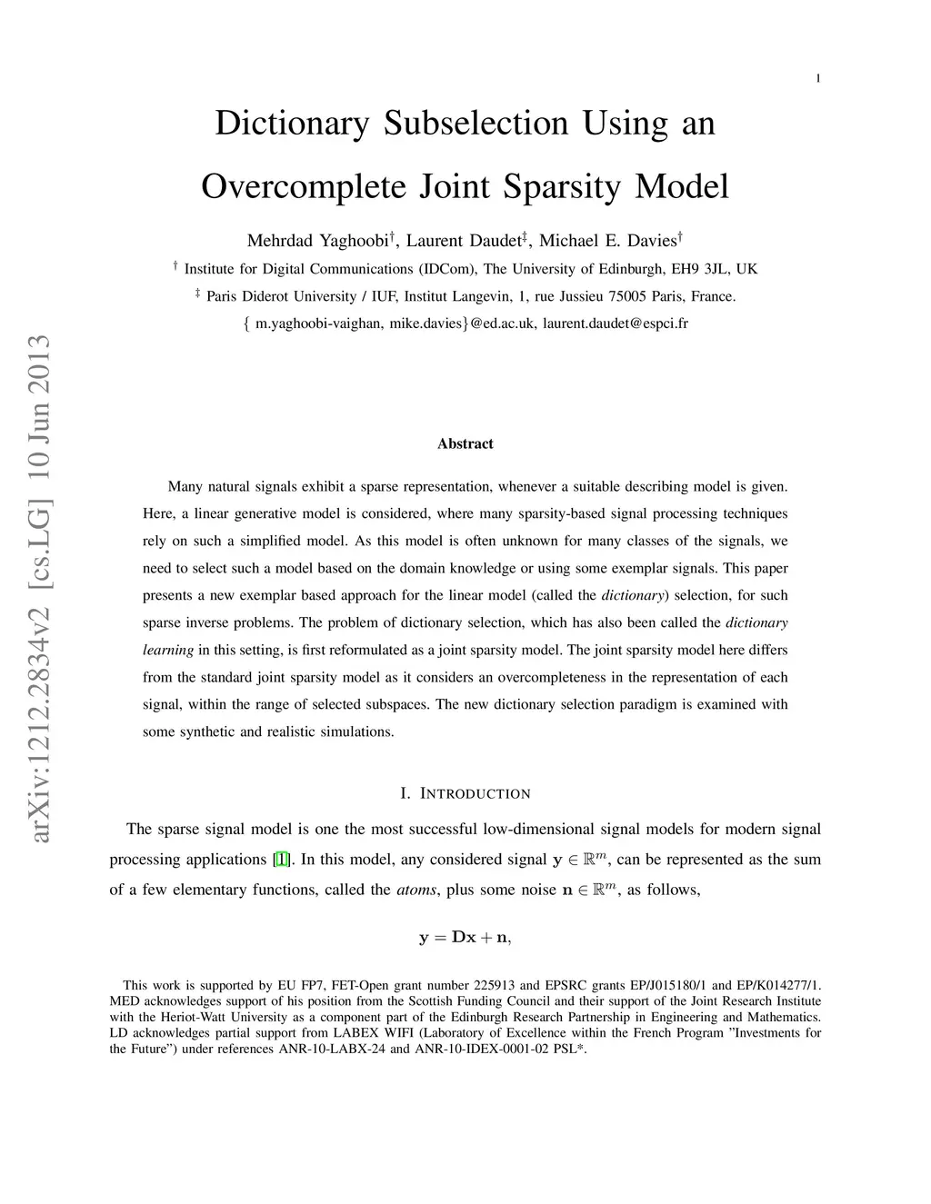 Dictionary Subselection Using an Overcomplete Joint Sparsity Model