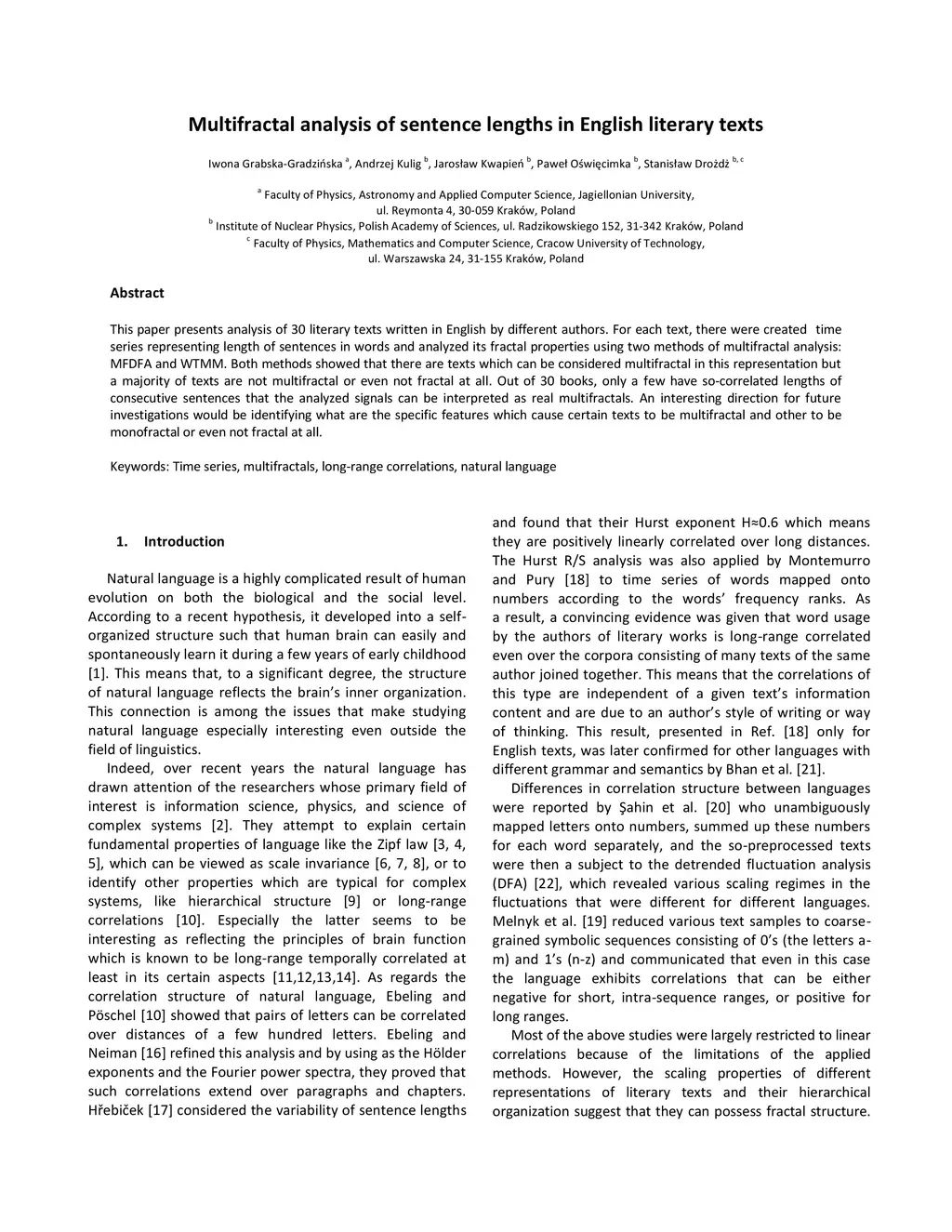 This paper presents analysis of 30 literary texts written in English by different authors. For each text, there were created time series representing length of sentences in words and analyzed its fractal properties using two methods of multifractal analysis: MFDFA and WTMM. Both methods showed that there are texts which can be considered multifractal in this representation but a majority of texts are not multifractal or even not fractal at all. Out of 30 books, only a few have so-correlated lengths of consecutive sentences that the analyzed signals can be interpreted as real multifractals. An interesting direction for future investigations would be identifying what are the specific features which cause certain texts to be multifractal and other to be monofractal or even not fractal at all.