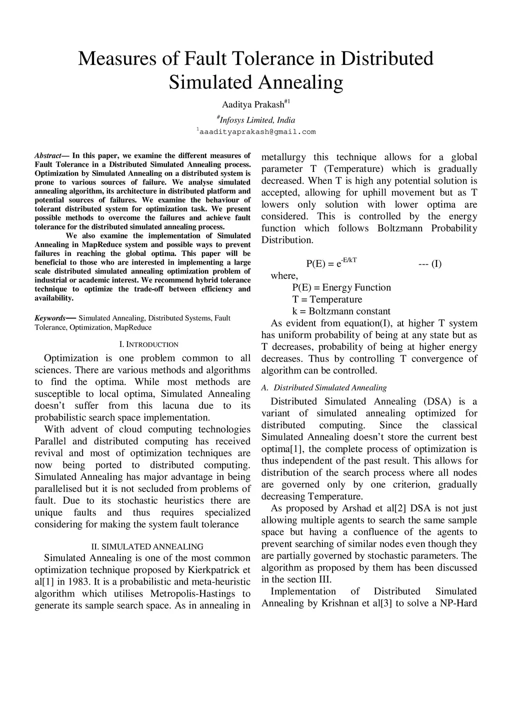 Measures of Fault Tolerance in Distributed Simulated Annealing