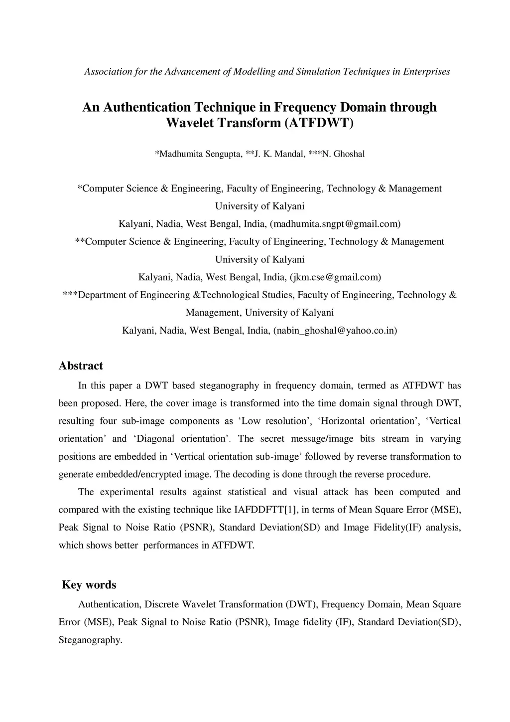 An Authentication Technique in Frequency Domain through Wavelet