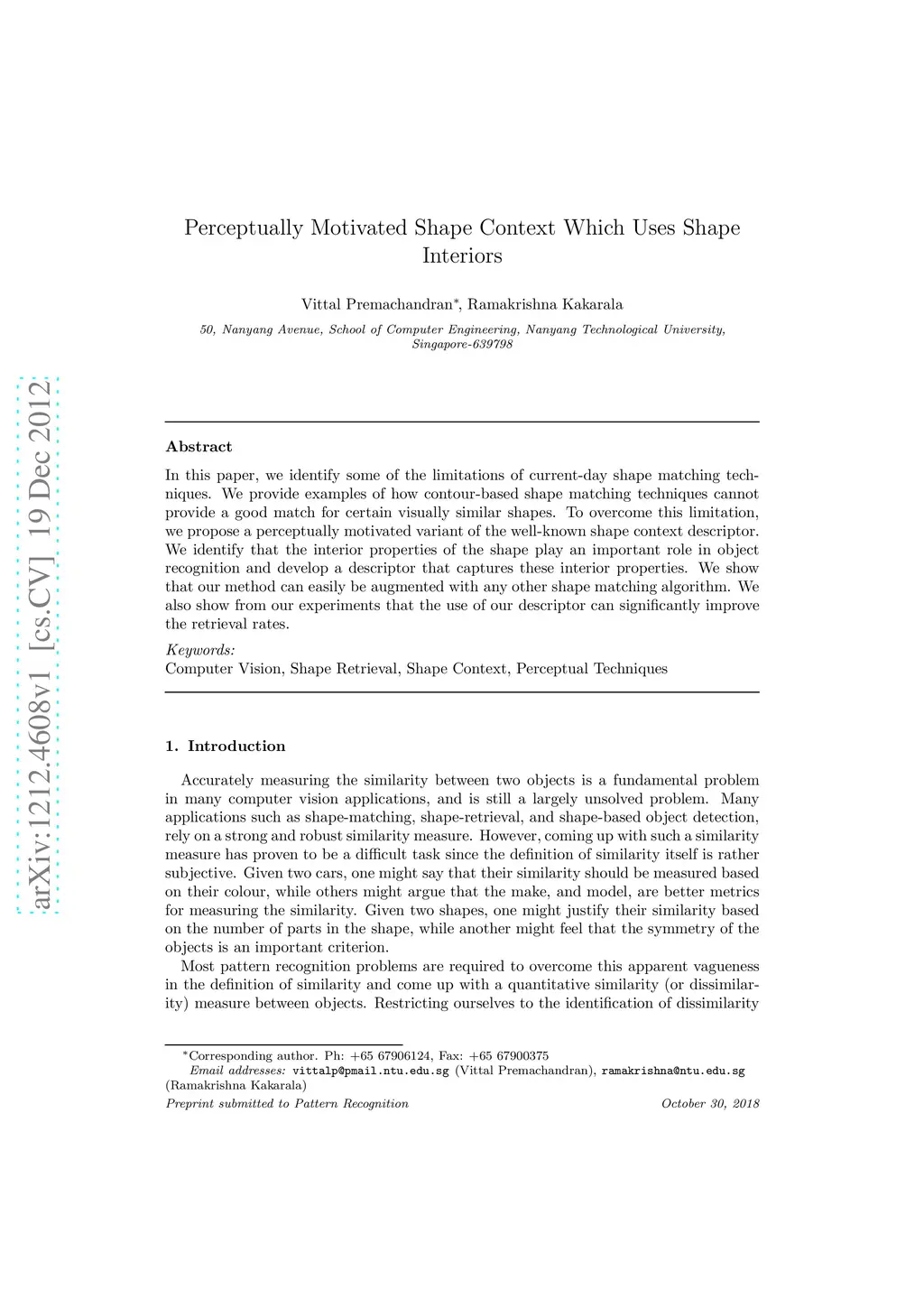 Perceptually Motivated Shape Context Which Uses Shape Interiors
