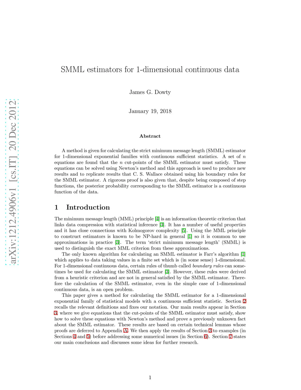 SMML estimators for 1-dimensional continuous data