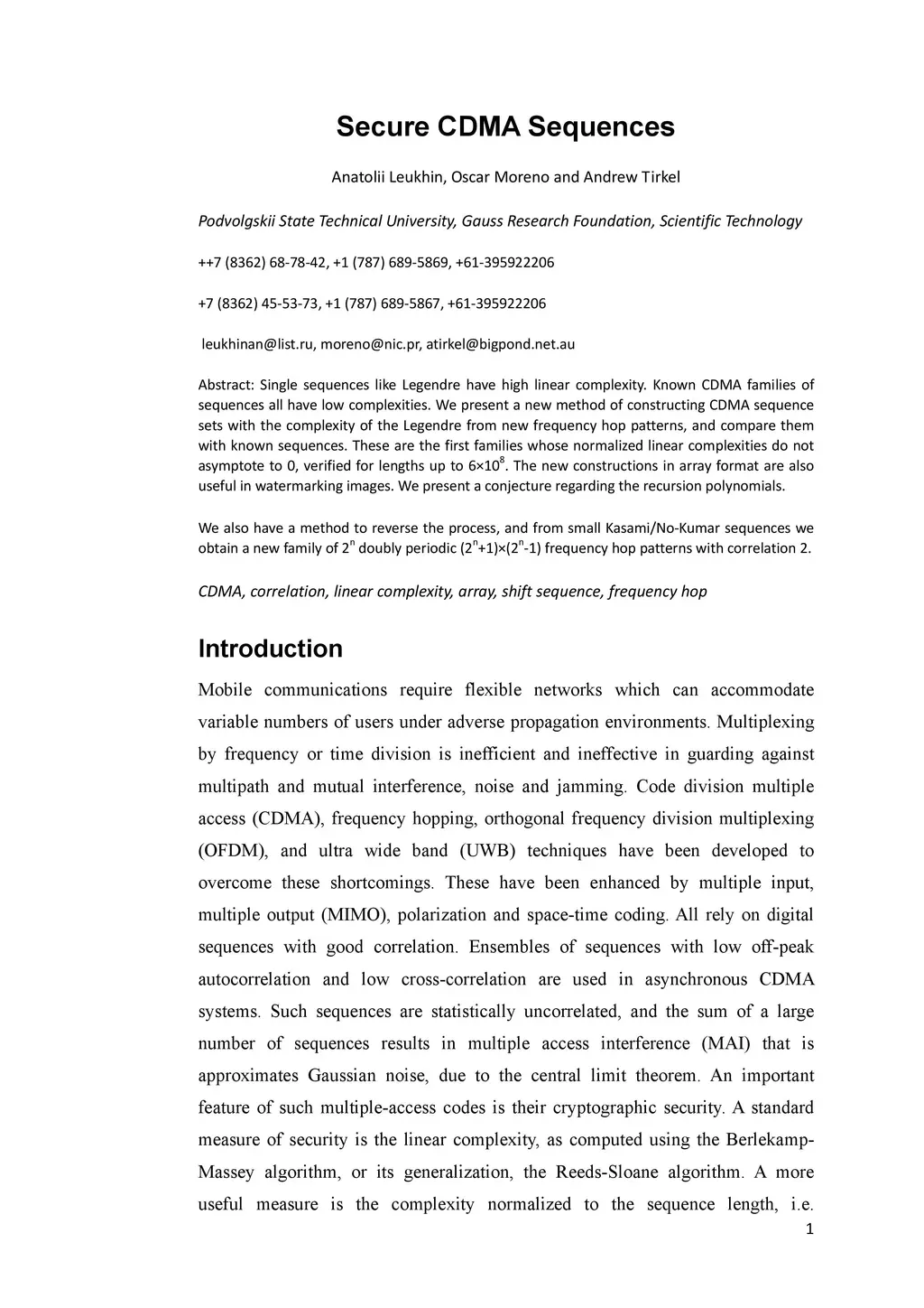 Secure CDMA Sequences