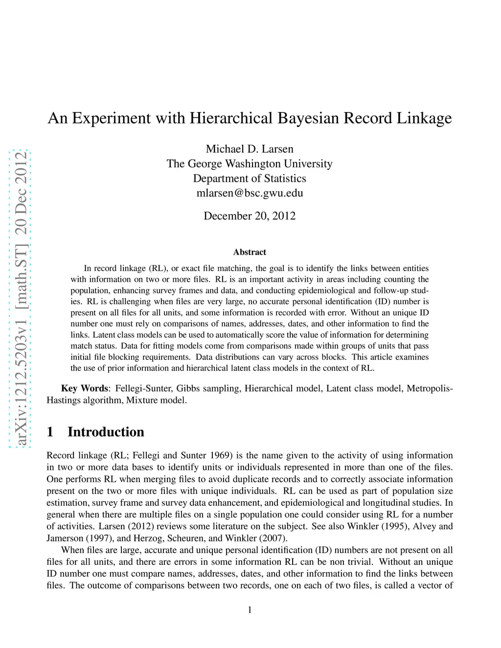 An Experiment with Hierarchical Bayesian Record Linkage